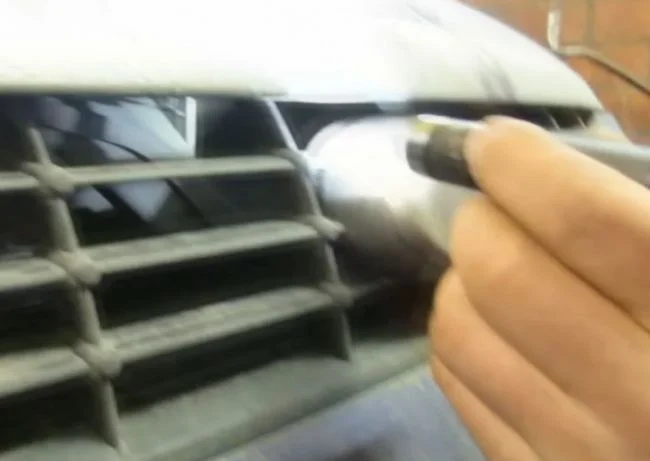 При таком варианте надо поворачивать замок с помощью подходящего инструмента(крючок, длинная плоская отвёртка с широким жалом, шампур) просунув его через решётку радиатора.