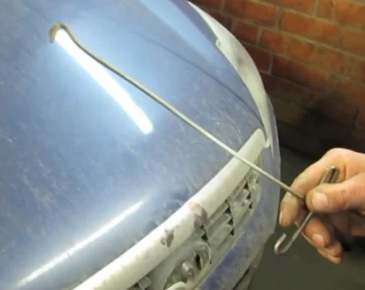 Возможные варианты — это сломанные «усики» на замке, слетевшая тяга с «усиков» замка, слетевшая тяга с личинки и сломанная сама личинка. При поломке личинки ее лучше высверлить и потом провернуть крючком, можно открывать и другими методами, все зависит от ситуации, больше информации в статье: "Как открыть замок капота"