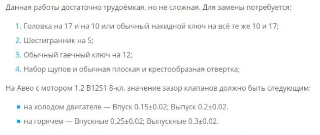 Как отрегулировать клапана на Авео 1.2?
