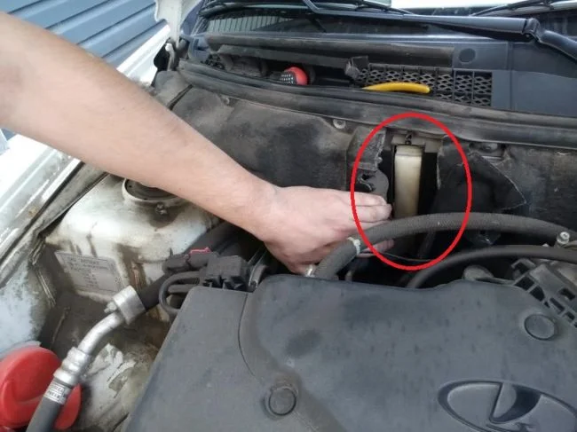Для начала вытаскиваем салонный фильтр. Он находится под капотом, под лобовым стеклом, прикрыт защитной крышкой (на фото ниже обведен красным).