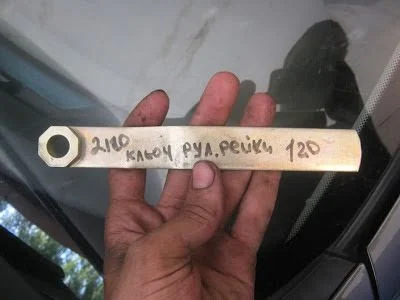Затем рукой нащупать механизм регулировки рейки и вытащить резиновую заглушку. Она используется, когда нужно смазать механизм. Далее просовываем руку под левую рейку, накидываем специальный ключ в отверствие и немного закручиваем гайку внутри.