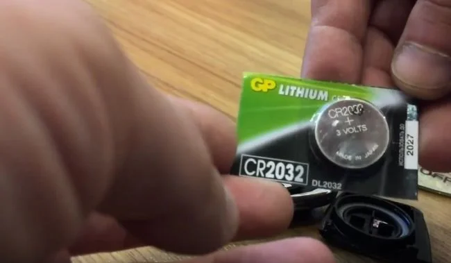 Вставляем новую батарейку, одну сторону подведя под упоры в сторону и нажав возвращаем к другой стороне под упоры.