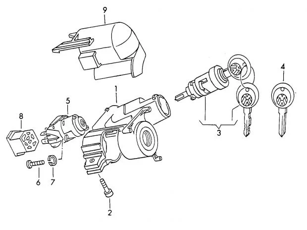 Снять руль, снять замок (болт с отрывной головкой (2)), извлечь контактную группу (5), заменить, собрать обратно.