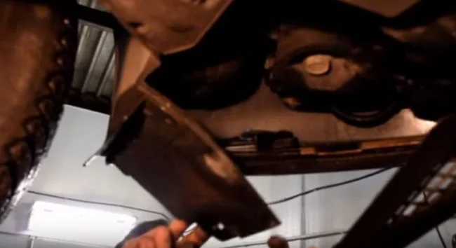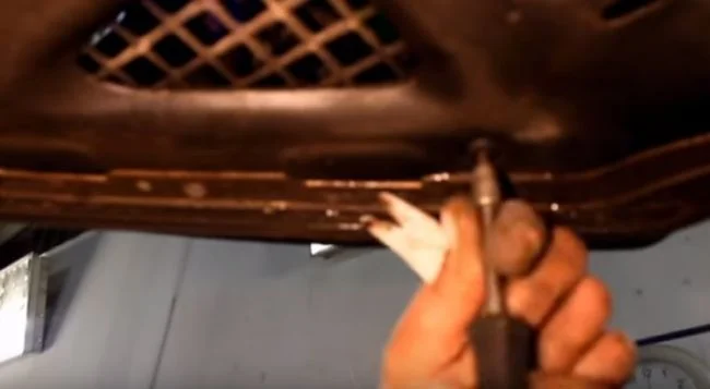 Торцевым ключом Т20 выкручиваем 4 болтика крепления брызговиков снизу.