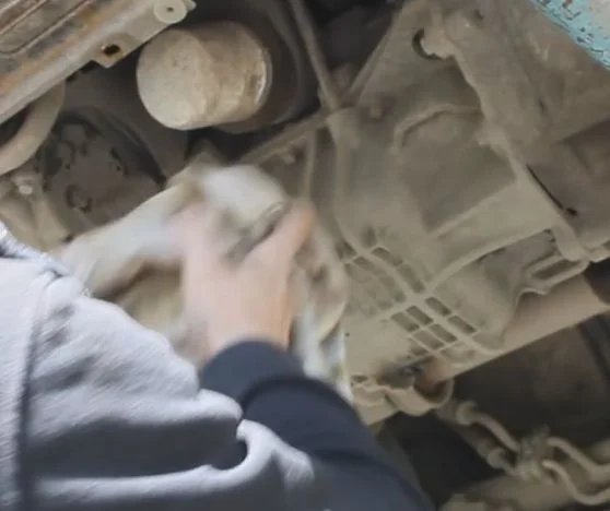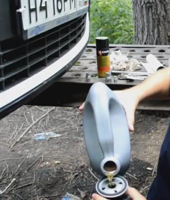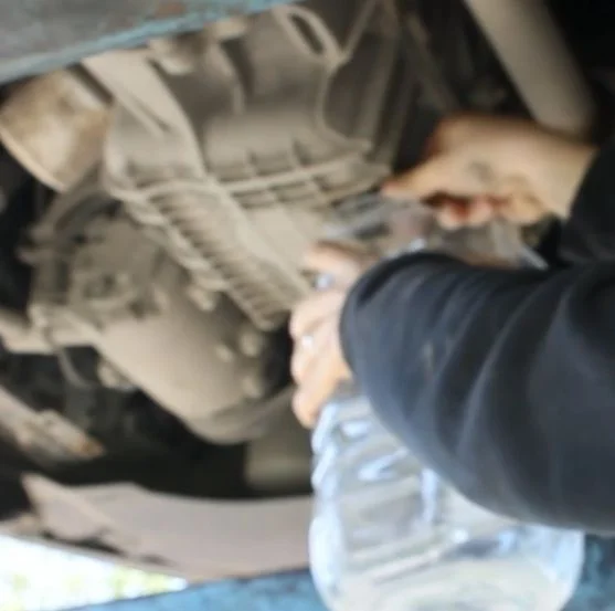 Подставляем ёмкость для отработки и полностью снимаем пробку(масло горячее, осторожно).