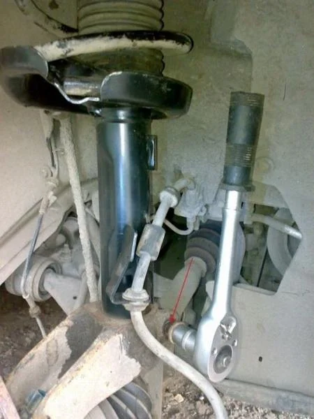 Выкручиваем болт крепления стойки в поворотном кулаке.