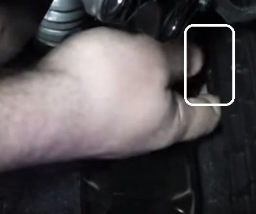 Выдёргиваем крышку взявшись за ушко в сторону педали. С завода там идёт герметик и может потребоваться некоторое усилие.