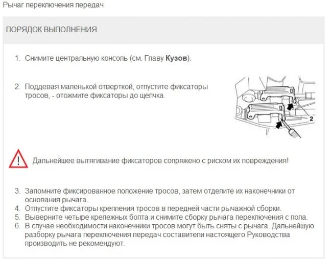 Вот описание про снятие и установку механизма переключения, с рисунками.