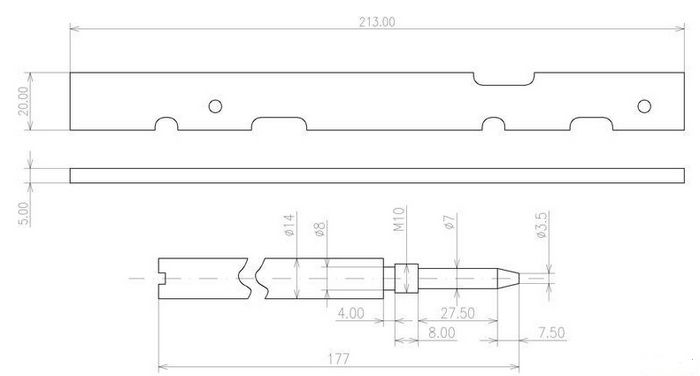 Чертеж приспособления для стопора распределительного и коленчатого вала. Сверху распредвал, снизу коленчатый вал.