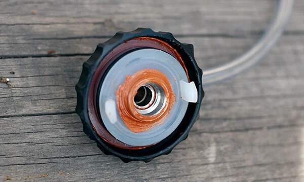 Чтобы смастерить такое приспособление для прокачки потребуется крышечка расширительного бачка (можно купить новую, а старой как и воспользоватся), нагнетательная «груша» от прибора измеряющего артериальное давление и небольшой кусочек трубки со штуцером, который нужно будет вмонтировать в крышку.