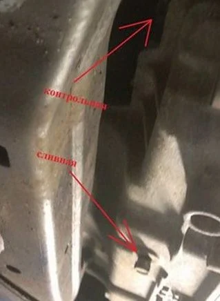 Подставив небольшую ёмкость под пробку берём пробу масла. Если после отвинчивания пробки масло не потекло, то надо долить через отверстие сапуна.
