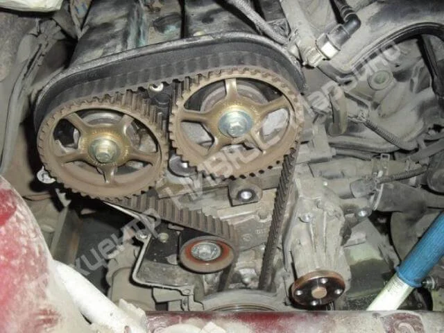 Для проверки ремня надо снять крышку спереди двигателя. Прежде чем снять крышку придётся сделать операции как при замене ремня ГРМ.