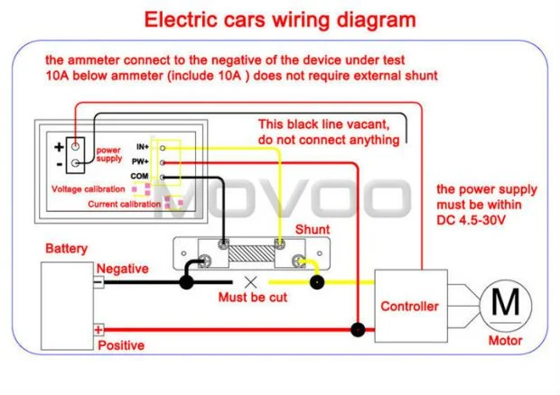 На средний вывод PW+ подайте плюс с АКБ, считайте что двигатель на картинке это ваш Авто, так что отключаете массу и в разрыв ставите прибор. Маленький разъём 2pin подключать параллельно АКБ, напряжение будет показывать.