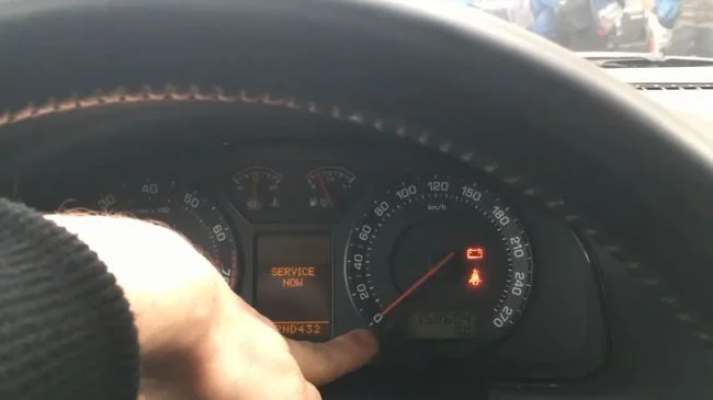 - Включаешь зажигание и если ты сделал всё правильно, то на дисплее у тебя появится “SERVICE NOW — Обслуживание”. И тогда можно отпустить кнопку.