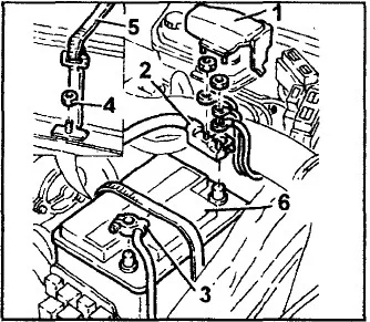 Отверните ключом на 10 гайку зажимающую «-» клемму.