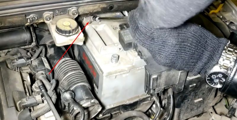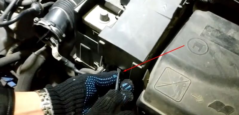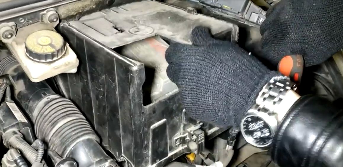 Потребуется снимать патрубок, блок предохранителей с кожуха АКБ, сам кожух, добраться и скинуть клемму (очень не удобно, большими руками не справится).