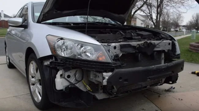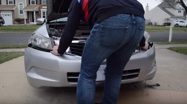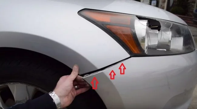 Вытаскиваем бампер из защёлок под фарами постепенно двигаясь к центру авто.