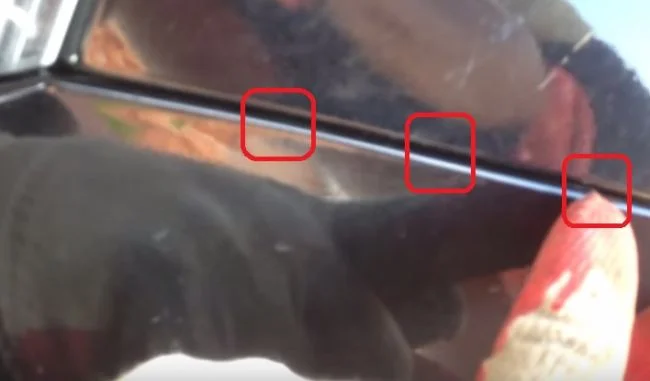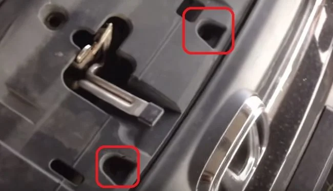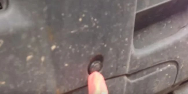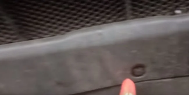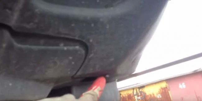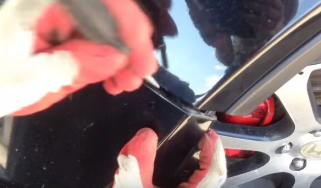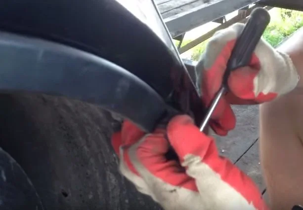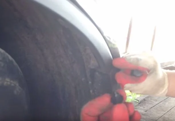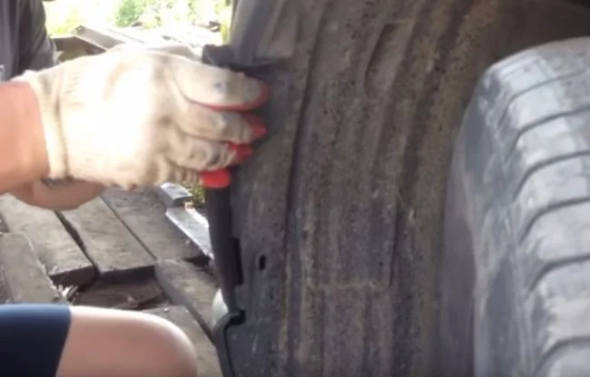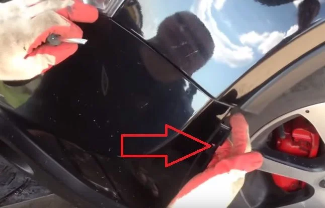 В указанных местах в щель вставляем отвёртку и отжимаем бампер вниз.