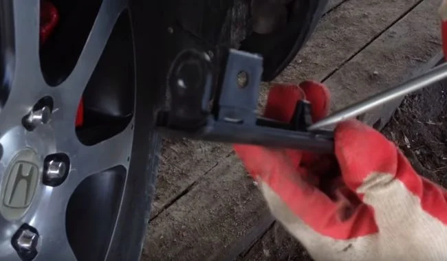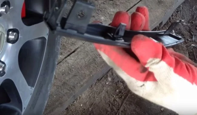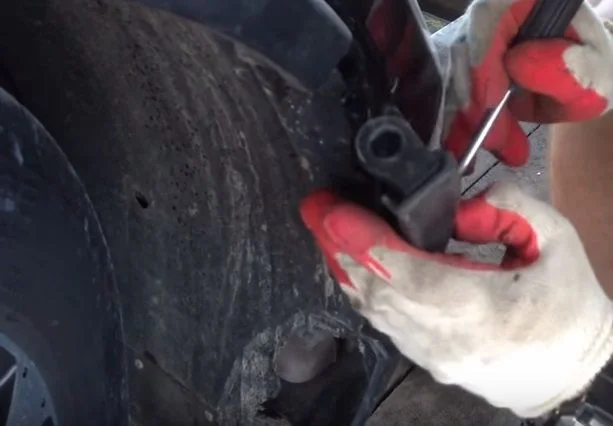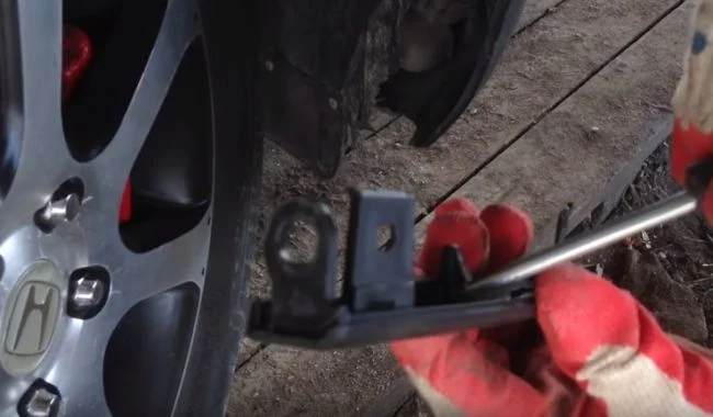 То есть в процессе снятия подцепляете защёлку отвёрткой и толкаете её в сторону колеса.