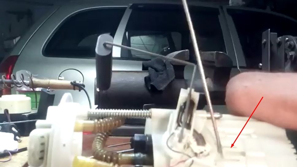 Шлицевой отверткой отведите вверх фиксатор и снимите датчик уровня топлива.