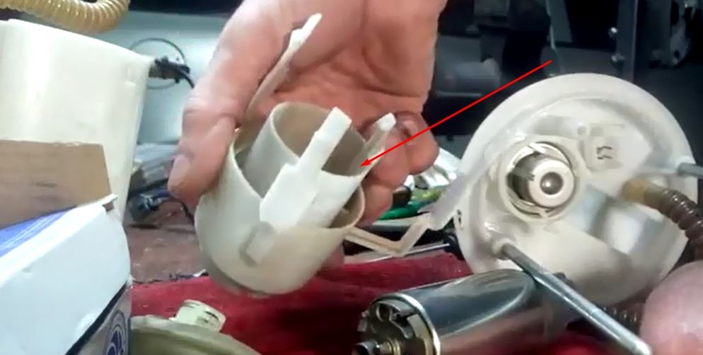 Снимите сетку топливного насоса с помощью шлицевой отвертки. Она защелкивается за счет пружинного кольца.