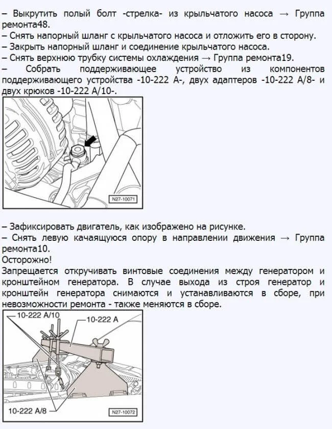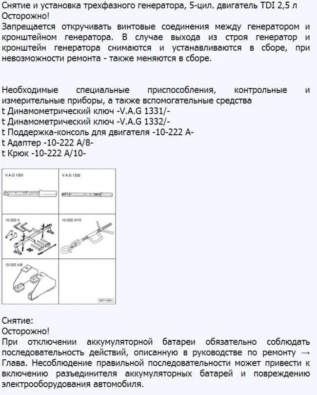 Снятие генератора на «Фольксваген Туарег» TDI 2,5 л