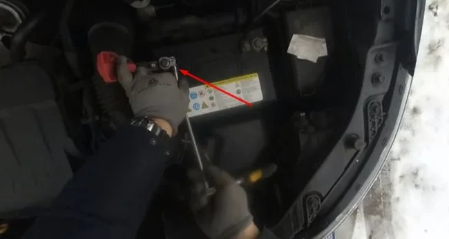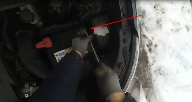 Снимаем минусовую клемму, затем плюсовую.