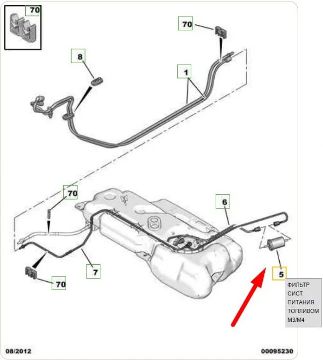 Вин номер не пробивается по каталогам запчастей, почему то. Проверьте нет ли топливного фильтра рядом с топливным баком, как указано на первой схеме. Если его нет, значит он все же в баке стоит, в топливном модуле.