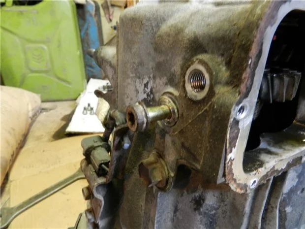 Потом снять выжимной, вилку сцепления и открутить вал на котором держался выжимной подшипник (там 4 болтика тем же самым ключом). Затем открутить датчики (скорости и заднего хода).
