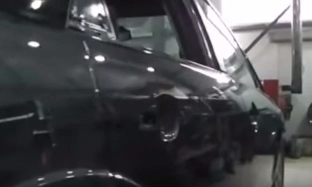 Лючок бензобака снимается с помощью отвёртки. Открываем лючок и видим прорезь в кронштейне.