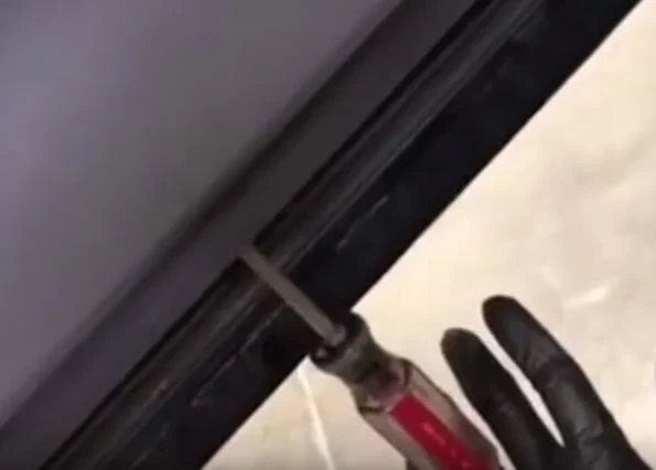 Снизу, между обшивкой и дверью вставляем отвёртку, как можно дальше, примерно по центру двери.