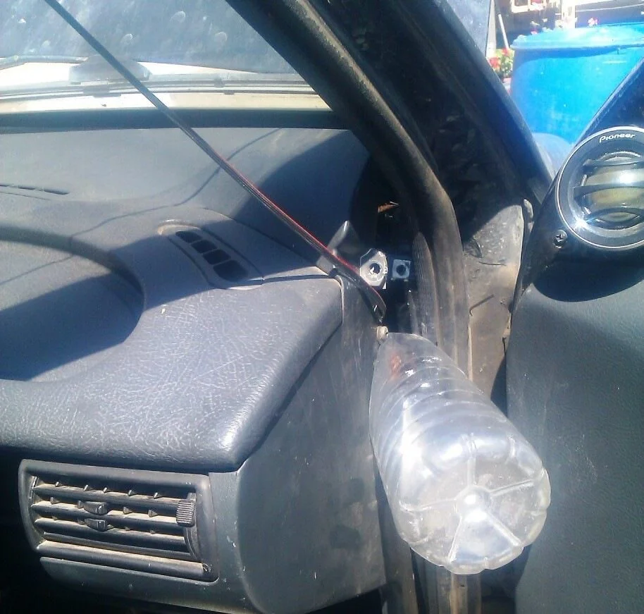 Со стороны пассажира подмащиваем что попадается подруку.