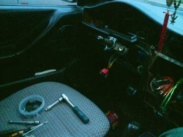 А остальные 6 болтов крепят 2 поперечные рамки каркаса торпеды к кузову. 1-я рамка находится за бардачком, возле центральной части торпеды (у крайней левой часть пространства за бардачком), а 2-я расположена симметрично, относительно центральной оси. Снимаем все пластмассовые панельки, кнопки и саму приборную панель. Будет мешать руль, по этому его можно либо опустить (открутить 4 болта в основании) либо тоже снять вместе с поворотником и стеклоочистителями. Отодвигаем немного торпеду и получаем доступ к радиатору отопителя (печке).