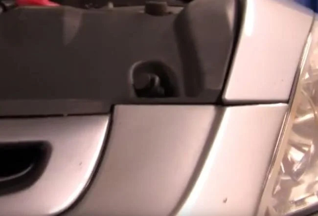 При снятии переднего бампера сначала снимается верхняя крышка. Вынимаем пять фиксаторов которые держат крышку.
