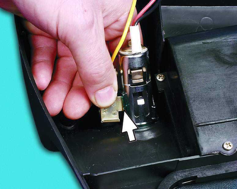 - Сердечник прикуривателя держит пружинный фиксатор, он отмечен на фото ниже.