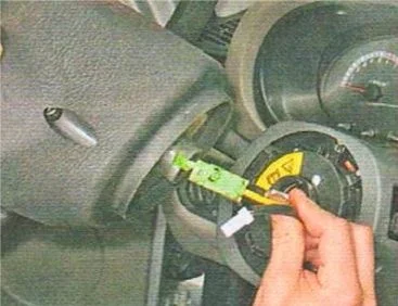 - Разъеденить колодки проводов выключателя звукового сигнала.