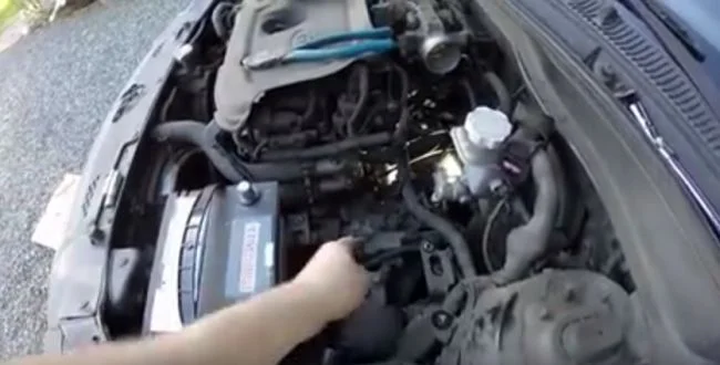 Сначала снимаем клемму минусового провода с аккумулятора. Затем и плюсовую. Сняв корпус воздушного фильтра вместе с патрубком освобождаем пространство для дальнейшей работы.