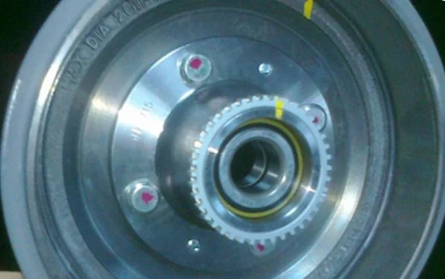 Составные барабаны имеют вмонтированные подшипники ступиц. Крепятся они одной центральной гайкой и после её откручивания барабан можно снять.