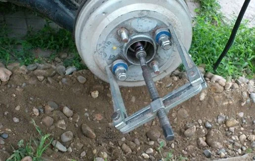 Также при снятии можно воспользоваться съёмником который используется для снятия полуосей классики ВАЗа, ГАЗ, Москвич. Съёмник для полуосей фиксируется на колёсных болтах и дальше выбивается также как полуось.