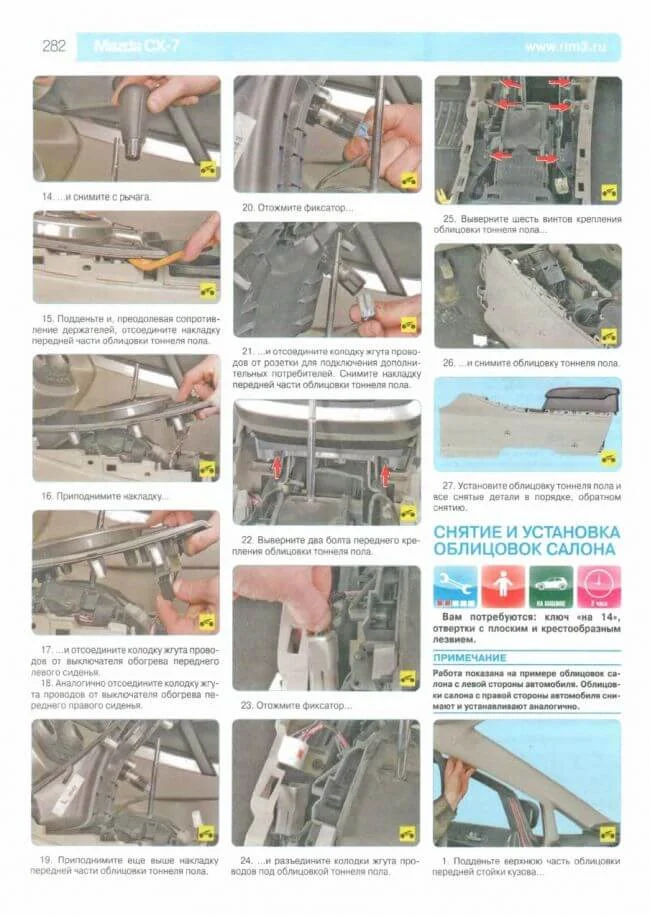 Видимо вас интересует снятие и установка облицовки тоннеля пола Mazda CX-7, 2006 — 2012г.г.