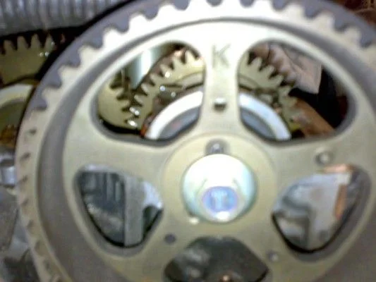 Вначале необходимо установить ВМТ первого цилиндра. Ориентирами здесь служат шпонка на колене, которая при правильном выставлении должна смотреть строго вверх, а также на самом шкиве распределительного вала имеется метка-сверление в виде буквы К или А, которые тоже должны смотреть четко вверх. На фото все отчетливо видно и понятно.