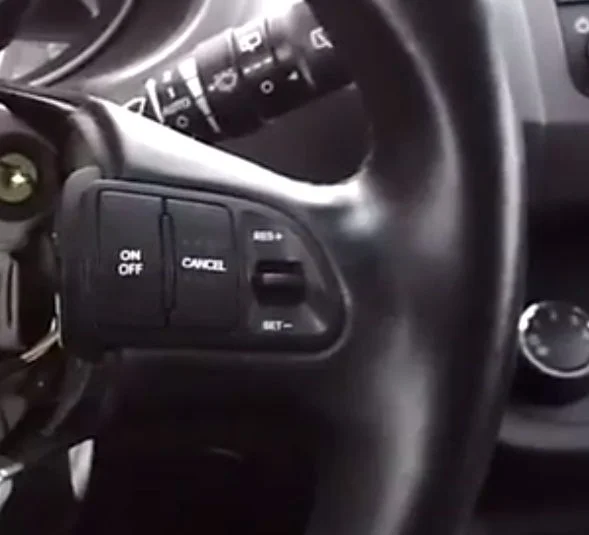 После активации у вас загорится индикатор включения. Теперь можно включить контроль на выбранную скорость(не менее 40 км/ч). Для включения правую крайнюю кнопку(SET-) нажимаете вниз и на скорости которая нужна отпускаете, в это время отпускаете педаль газа.