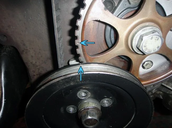 Важно не нарушить правильное расположение всех меток когда будете одевать ремень на шкивы.