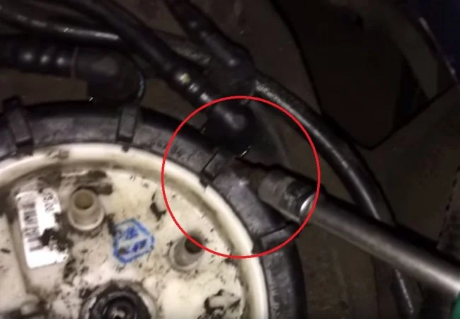 Перед снятием желательно полностью слить бензин из бака. Затем снимаем колодку подключения проводов. Патрубки на крышке соединяются быстросъёмными соединениями. Для снятия надо нажать на защёлку и можно выдёргивать.