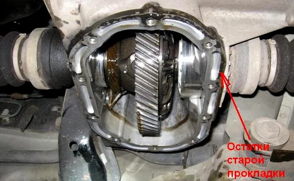 Далее обезжириваем поверхность, куда будем устанавливать прокладку и промазываем герметиком и прикручиваем поддон коробки.