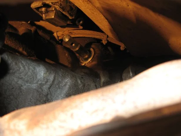 Далее ключом на «10» нужно открутить болт крепящий тягу идущую к ручке коробки передач, а чтобы не мешала загибаем ее кверху и там фиксируем.