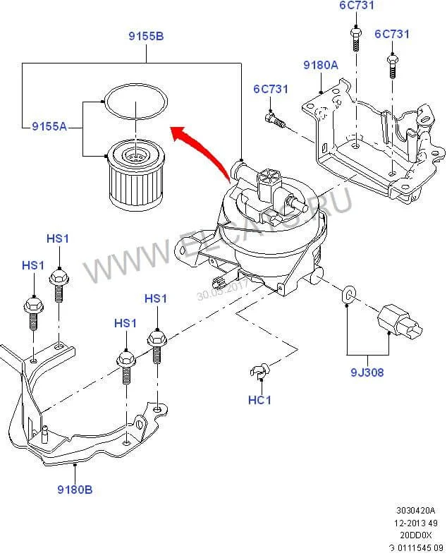Для дизельных моторов фильтр под капотом меняется сменным элементом. Например для мотора 2.0 используется сменный патрон с артикулом 1 318 563.