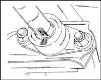 - Отсоедините рычаг регулировки высоты от хомута и выньте торсион из подкладки на нижнем поперечном рычаге.