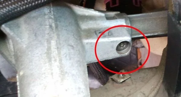Теперь откручиваете болтик крепления к рулевой колонке.