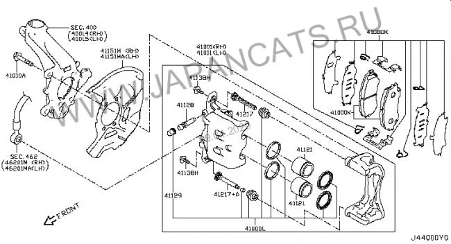 Оригинальные передние тормозные колодки Nissan D1060-4CA0A, из аналогов можно взять например Sangsin SP 1715.